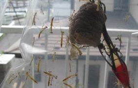 正式名はモンクロシャチホコといい、シャチホコガ科の一種。写真の幼虫はまだ体色の赤い若齢である。通勤の道筋にある家の庭木(シダレザクラ)に毎年発生することは分かっていた。今年こそはと当たりをつけていた。そして15日、ついにその日がきた。いい具...