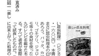 この夏、江戸東京博物館で「大昆虫博」が開催された。そのガイドブックで市販もされている『すごい虫』の中で、尊敬する池田清彦さんに、虫に関するオススメ本として『楽しい昆虫料理』を紹介していただく。感激の一言である。中央下段。
