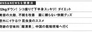 健康 198 女性健康誌の取材 ニュース&トピックス 未来食!? 昆虫食に秘められた健康パワー!?、季刊「Shakitt」2008年冬号(2007年12月1日発売)(30代からのヤングミセス対象の健康雑誌、部数5万部)、ビジネス社。ゲテモノ食い? と思われる虫食。しかし虫... 2007.11.05 健康