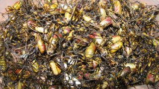 仲間五人と里山へ入る。お天気は風もなく晴れて上々。今年初めての虫取りに興奮する。ヤマトシロアリ、トビズムカデ、コクワガタ、キイロスズメバチ、シロテンハナムグリ、マイマイカブリ、ハナカミキリなど採集する。楽しかった。