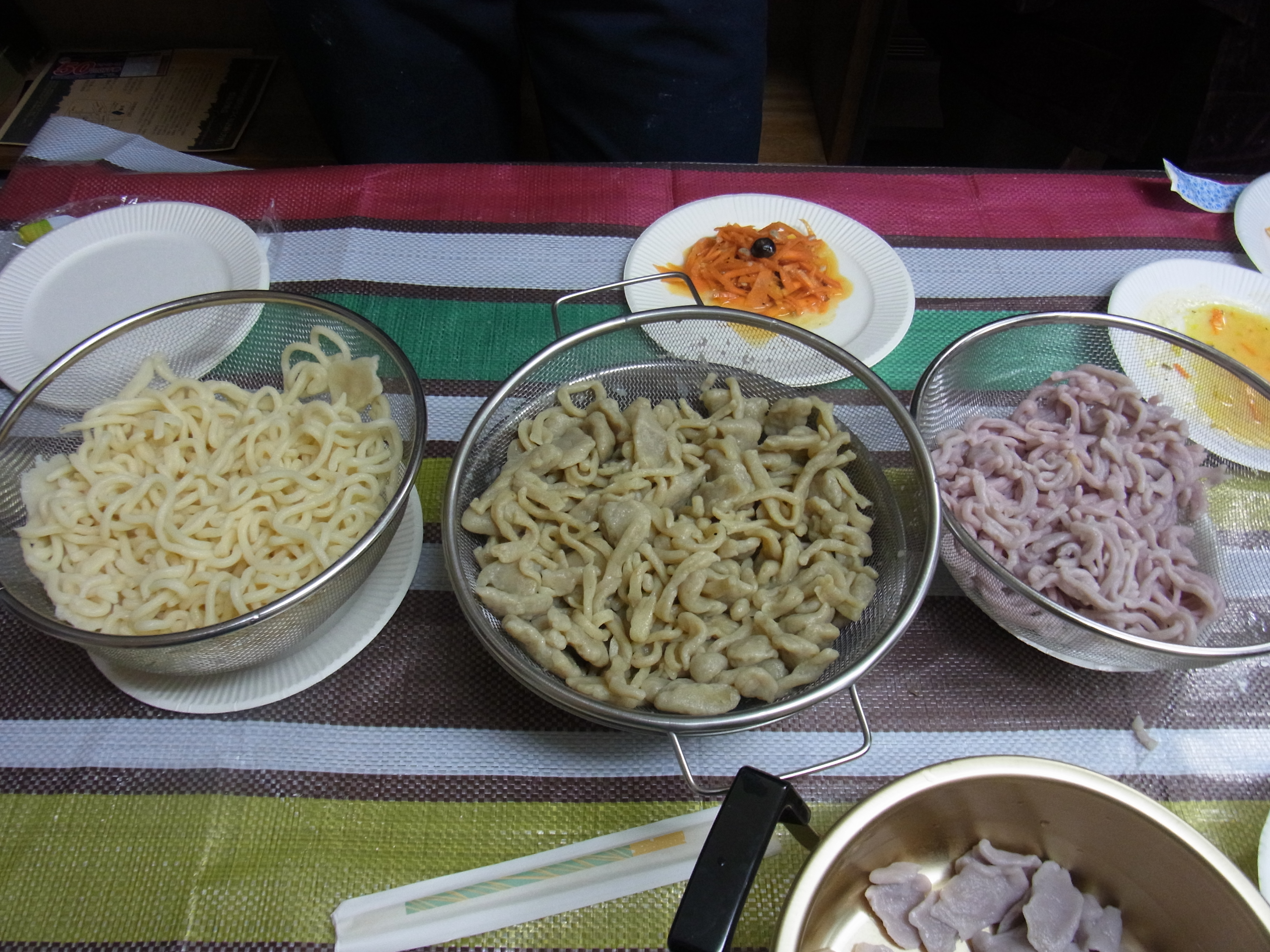 初めてだったので分量などの調整が必要だが、それぞれが特徴のあるうどんが出来たように思う。タガメうどんがいちばん好評だった。
