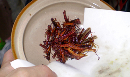 去る11月18日、淀川河川敷での昆虫を捕って調理して食べる会が開かれた。この会は、「野食計画」が中心となり、今年のセミ会に参加された淀川近くにお住いの西さん(アウトドア生活の達人)がアドバイザーとなって企画された。催しの内容は「昆虫食の会 報告」に詳しい。
