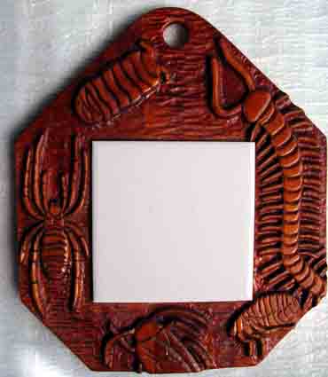 昨年12月のブログ214でも紹介したが、写真の虫鍋敷きを彫った小林君(現高校一年生)のすばらしい研究ノート「“昆虫食”を囓る」を、ホームページ「昆虫料理研究」に掲載した。彼は中学三年の総合の時間に、自由研究「国際理解:日本の伝統文化」で昆虫食を研究テーマに選んだ。昨年の秋のバッタ会にも参加して、実体験をふまえ貴重な研究成果を発表している。詳細はホームページをご覧いただくとして、彼が書いたまとめを引用したい。