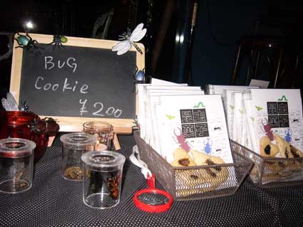 300 青山の「青い部屋」で虫クッキー完売 未分類 X Facebook はてブ LINE コピー 2008.11.02 10月31日のTRASH-UP NIGHT!! vol.9 “HORROR MAYDAY 08″で虫クッキーが予想以上に好評で、作った30セットが全部売り切れた。展示した生き虫も営業バグとしてがんばってくれたようだ。オーナーの戸川昌子さんにも2セット買っていただく。