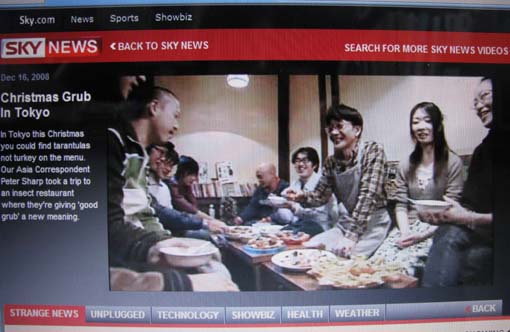 In Tokyo this Christmas you could find tarantulas not turkey on the menu. Our Asia Correspondent Peter Sharp took a trip to an insect restaurant where they’re giving ‘good grub’ a new meaning.