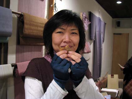 323 絹織物展示会 スイーツ X Facebook はてブ LINE コピー 2009.01.25 美味しいさなぎをいただいた京都の塩野屋さんが、東京の代々木上原で展示会を開催。さっそくさなぎを入れた生八つ橋を作って差し入れた。美味しいと食べていただいたのに気を良くし、次回のひるべにもさなぎ入り八つ橋を作ろうと思う。乞うご期待。