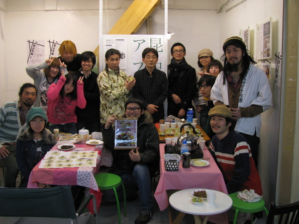 402 昆虫料理教室アブラウリ 未分類 X Facebook はてブ LINE コピー 2010.03.23 西武新宿線野方駅近くの文化マーケット内で昆虫スイーツを作るイベントがあった。コオロギとミルワームのタルト、アリとハチのクラッカーを参加者のみなさんといっしょに作った。新しい会場では新しい人たちとの出会いがあり、とても楽しい時間を共有できたように思う。このイベントを企画された小鷹さん、根橋さん、ありがとう。またやりたいですね。