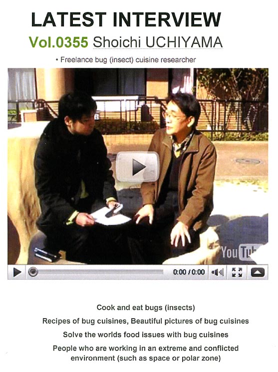 405 zukan.tv 昆虫料理 X Facebook はてブ LINE コピー 2010.04.16 英語字幕付きで昆虫料理を紹介する動画が「zukan.tv」 よりアップされた。これで海外からでも昆虫料理の魅力を知ることができるようになった。