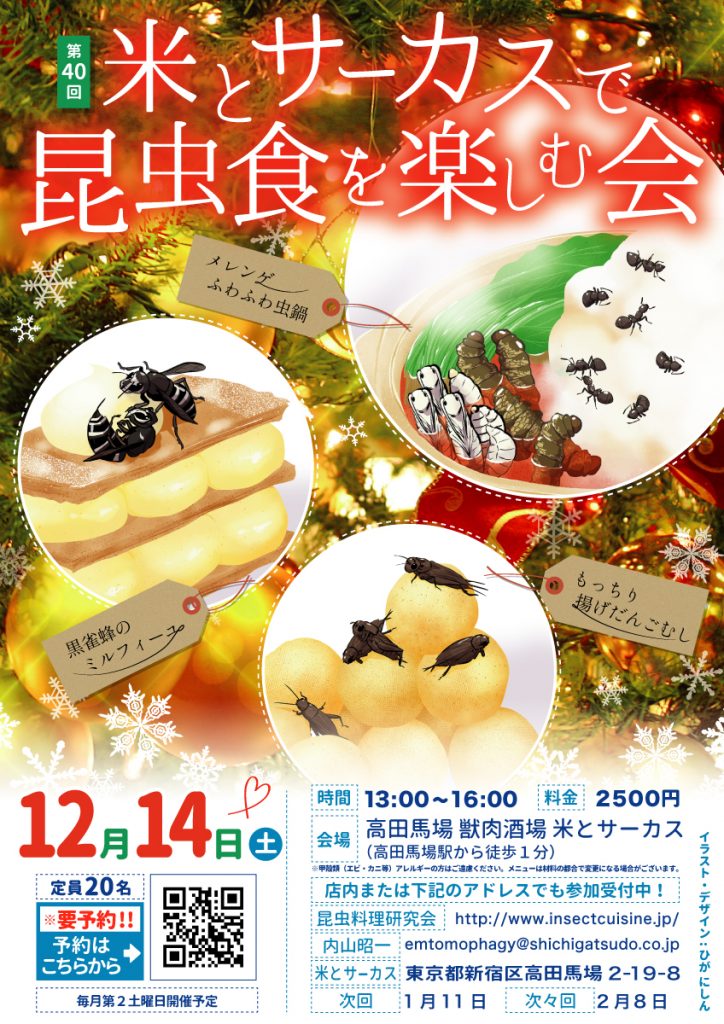 今月も美味しいメニューが並びます。ちょっぴり早いクリスマスを虫料理で楽しもう。