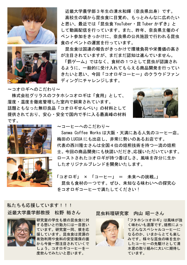 近大生・ハタチの挑戦!昆虫食をもっと身近に!コオロギコーヒーで未来をお届けしたい