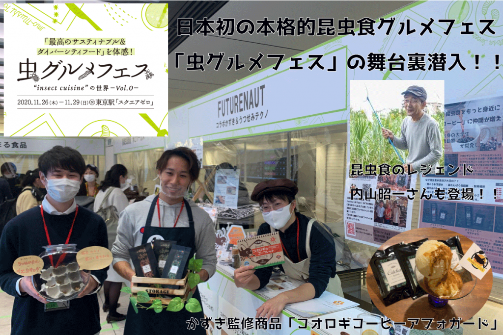 日本で初めて開催された昆虫食グルメフェス「虫グルメフェス」の舞台裏を紹介します!!! 未分類 X Facebook はてブ LINE コピー 2020.12.10 今回は、日本で初めて開催された昆虫食グルメフェス「虫グルメフェス」 の舞台裏を紹介します!!! 協力いただいた皆様 FUTURENAUT 櫻井くん うつせみテクノ 秋山くん はまる食品 諸岡さん 昆虫食活動家 かずきさんのHPで情報発信しています。 https://kontube.work/