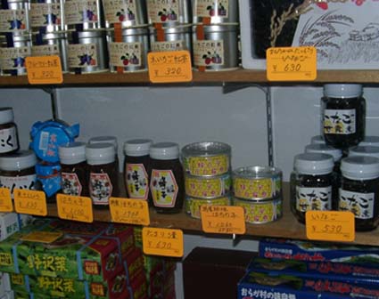 *かねまんのミニ缶を中心に、昆虫食品のほぼ全種類を揃えている。若い男性が面白がって買っていくことが多いという。今回帰ってみると右隣がコンビニに変わってしまっていた。A店よ、がんばれ!