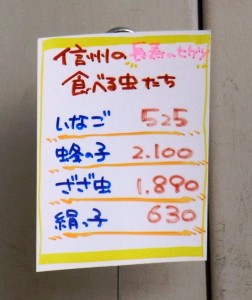 ハチノコやザザムシは収量が減っていて年々確保が難しくなってきているようだ、とお店のご主人。ザザムシの減少は分かっていたが、ハチノコは回復しつつあるようにも聞いたいたので違和感を覚えた。