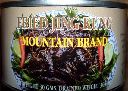 行きつけのタイ食品店に顔を出すと、新顔の虫缶詰が二種類入ったという。その一つが写真のタイワンオオコオロギ缶である。うわさではしっていたものの名前にたがわす大きい。エンマコオロギの比ではない。揚げてあるのでそのまま食べられる。コオロギは外皮が比較的やわらかなので大きくても食べやすい。頭はコリコリ、胸と腹はシコシコといたオノマトペが近いかも。とにかく食べ応え抜群である。