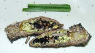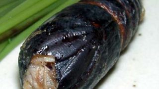 昆虫料理 062 子持ちヤママユの丸焼き